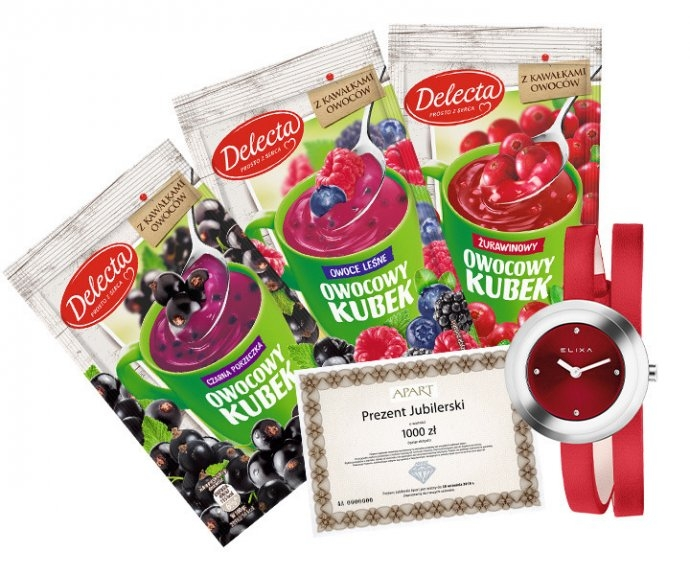 Nagrody drugiego stopnia: 4x zegarek ELIXA FINESSE + zestaw produktów Delecta