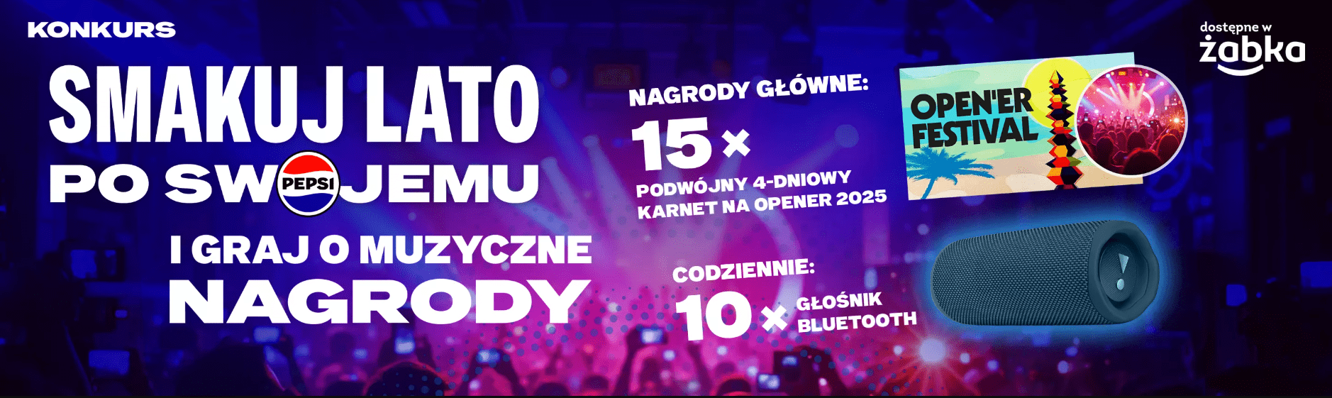 Do 3 czerwca kup w Żabce (z użyciem aplikacji Żappka) 3 dowolne butelki Pepsi, odbierz kod i do 5 czerwca zarejestruj go odpowiadając na pytanie na platformie konkursowej.