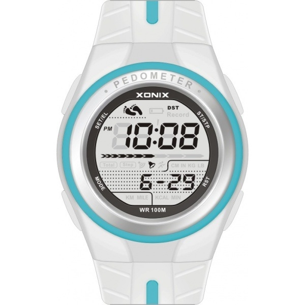 - zegarek sportowy XONIX GRP 001 z krokomierzem w kolorze biało-niebieskim