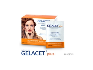 zestawy produktów GELACET Plus, pozwalający na przeprowadzenie 3-miesięcznej terapii wzmacniającej włosy, skórę i paznokcie.
