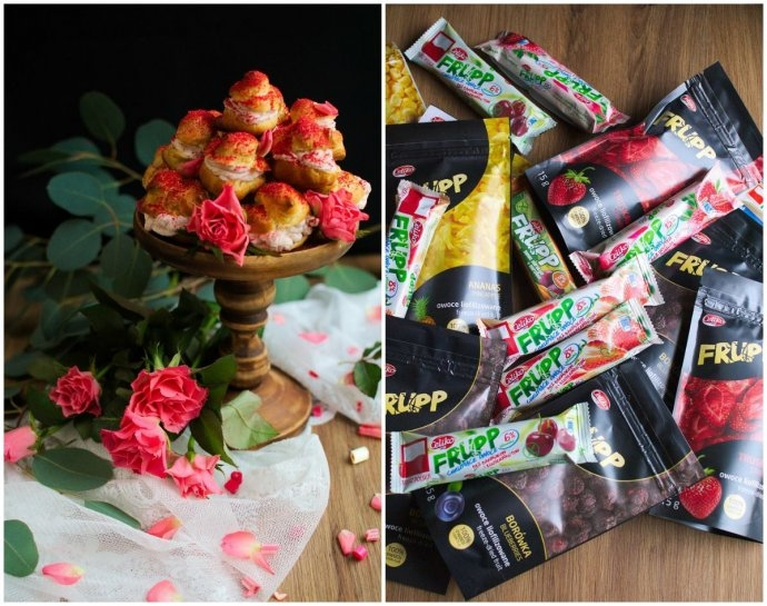Wymyśl ciekawą nazwę dla mini ptysi widocznych na zdjęciu poniżej. Ptysie zrobione są z ciasta parzonego, przekładane bitą śmietaną aromatyzowaną pudrem z liofilizowanych truskawek