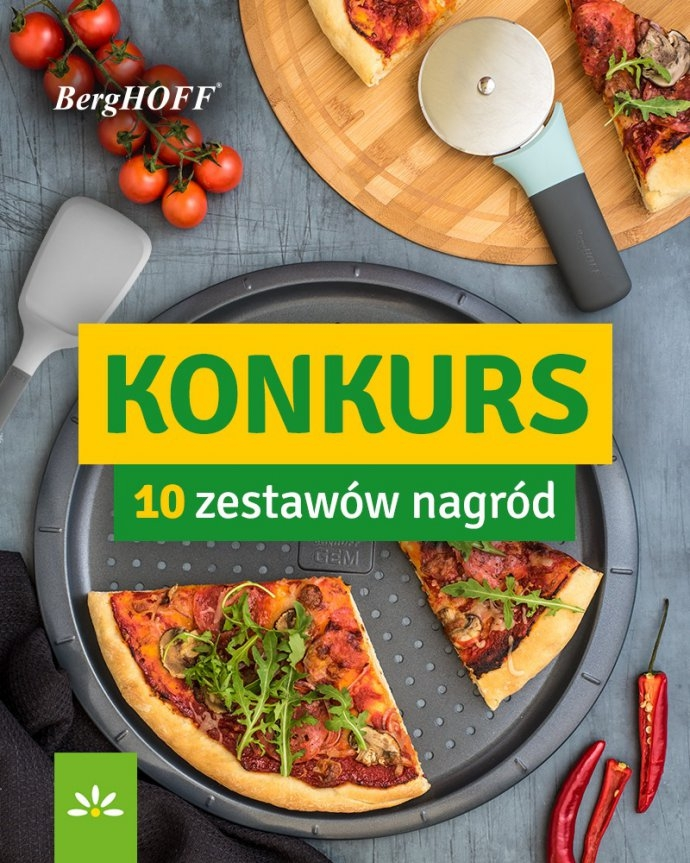 10 Zestawów Nagród. Każdy zestaw składa się z produktów: forma do pizzy, nóż do pizzy, szpatułka