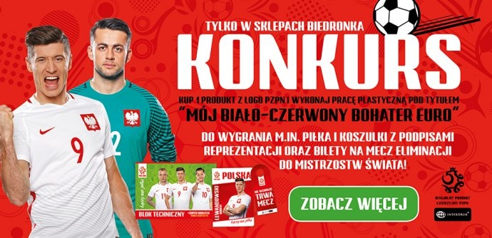 Należy kupić co najmniej jeden Produkt OPL, wyprodukowany przez INTERDRUK lub CARBOTEX w sieci Biedronka i przygotować pracę konkursową – pracę plastyczną (w postaci rysunku wykonanego dowolną techniką na temat „Mój biało-czerwony Bohater EURO 2016".