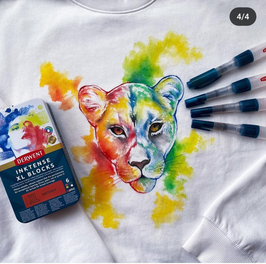 1x bluza + zestaw Derwent Inktense w sztyfcie XL 6 kolorów + zestaw 4 pędzli na wodę Derwent