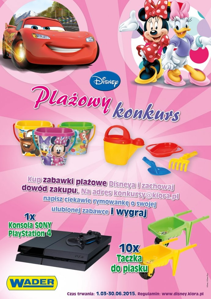 Kup zabawki plażowe Disneya i zachowaj dowód zakupu. Napisz ciekawą rymowankę o swojej ulubionej zabawce i wygraj.