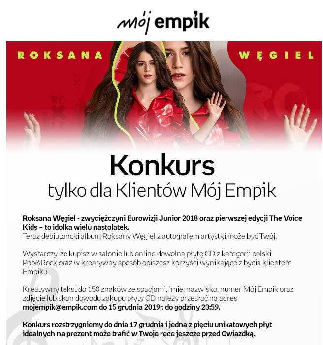 Konkurs "Płyta Roksany Węgiel z autografem"