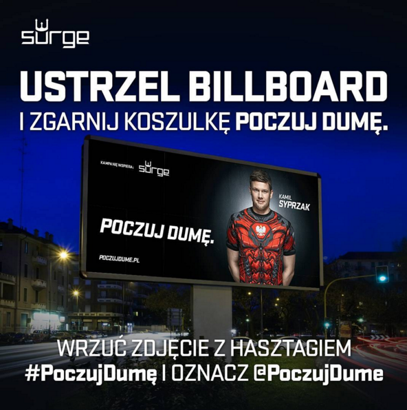 Upoluj billboard i zgarnij nagrodę! Wrzuć zdjęcie z naszym billboardem i zgarnij koszulkę "Poczuj Dumę." W całej Polsce znajduje się 140 nośników reklamowych z naszymi ambasadorami: Kamilem Syprzakiem, Karolem Bieleckim i Sławomirem Szmalem.