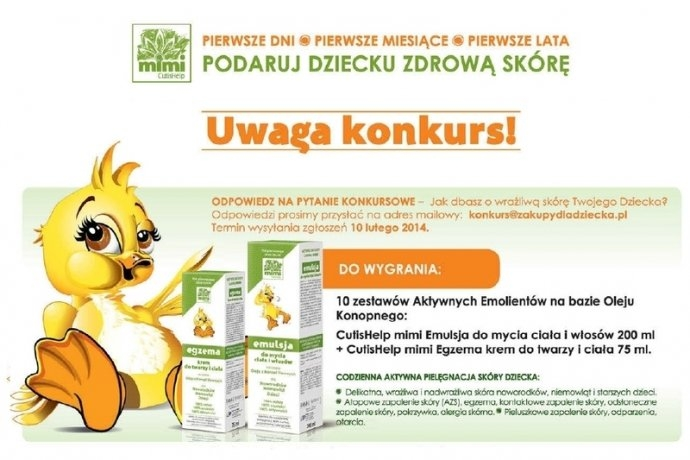 - Mail z wypowiedzią powinien być zatytułowany "Konkurs - Podaruj dziecku zdrową skórę".