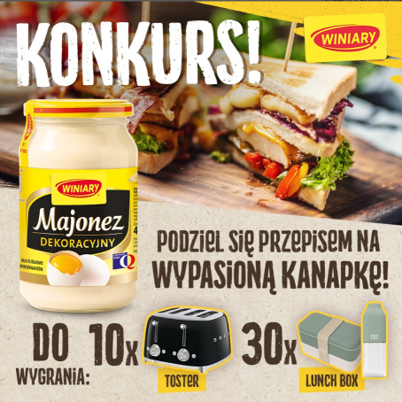 Podziel się swoim przepisem na wypasioną kanapkę z Majonezem Dekoracyjnym WINIARY w komentarzu pod postem i zgarnij nagrody