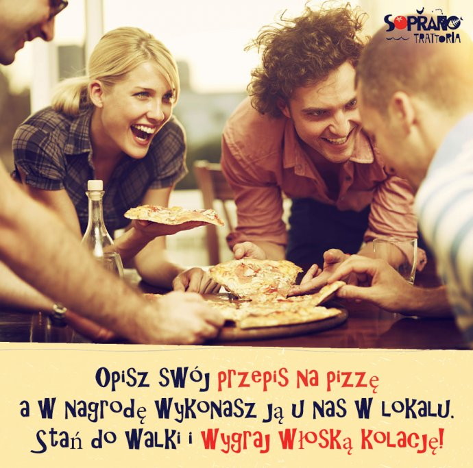 Opisz swój przepis na pizzę, a będziesz mógł ją zrobić w profesjonalnym piecu pod okiem specjalisty! W jury zasiądą redaktorzy największych portali: onet.pl i smaker.pl. Stań do walki! Najlepsza pizza wygrywa prawdziwie włoską kolację!