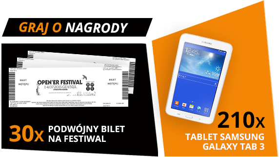 30 podwójnych biletów na OPEN'ER FESTIWAL, 210 tabletów Samsung Galaxy Tab 3