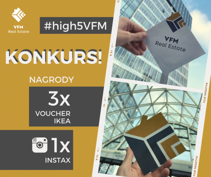 Swoje zgłoszenie trzeba załączyć w komentarzu pod postem konkursowym na fanpage’u dewelopera lub zamieść na swoim profilu na Instagramie oznaczając konto @vfm_realestate, tagując zdjęcie #High5VFM i #VFMrealestate