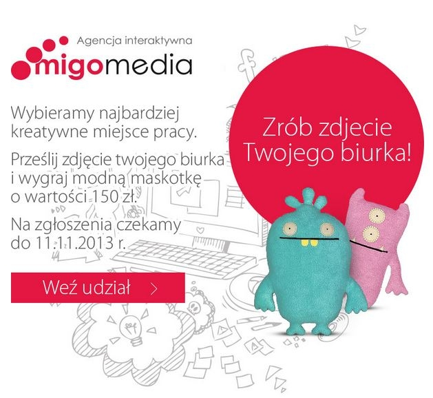 Konkurs jest opublikowany i prowadzony tylko i wyłącznie na profilu agencji w portalu społecznościowym Facebook. Konkurs polega na zrobieniu zdjęcia swojego biurka w pracy w sposób ciekawy i kreatywny i przesłaniu zdjęcia poprzez aplikację konkursową umieszczoną na profilu agencji Migomedia na Facebooku.
