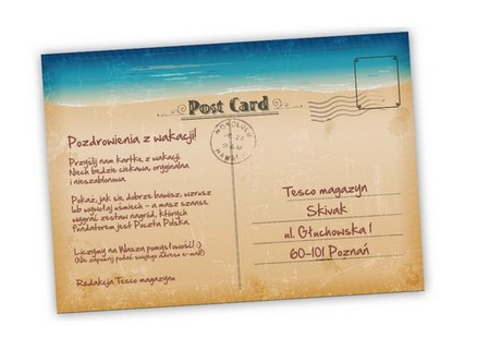 Kartki należy przesyłać na adres: Skivak, ul. Głuchowska 1, 60-101 Poznań z dopiskiem „Tesco magazyn”. Nie zapomnijcie podać adresu mailowego!