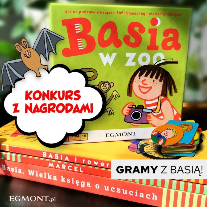5 nagród w postaci zestawów: gra Basia w Zoo oraz trzy książki Basia i rower, Marcel oraz wielka księga o uczuciach.