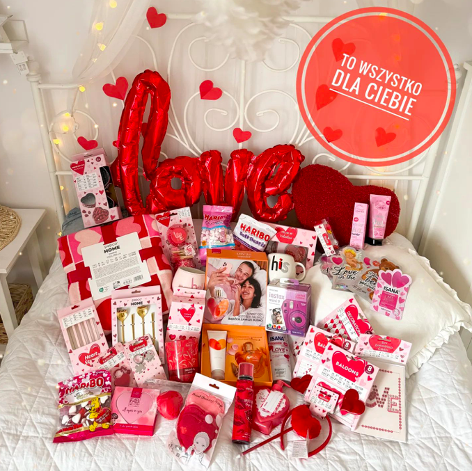 Co dostanie jedna osoba: Instaxa Mini 9, kosmetyki, kocyk walentynkowy, poduszkę walentynkową, słodkości i dekoracje oraz inne gadżety na walentynki.