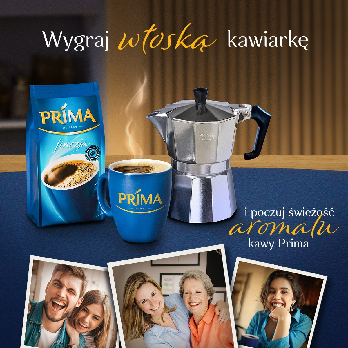 3x zestaw, który zawiera: kawiarkę + kawę Prima 250g.
