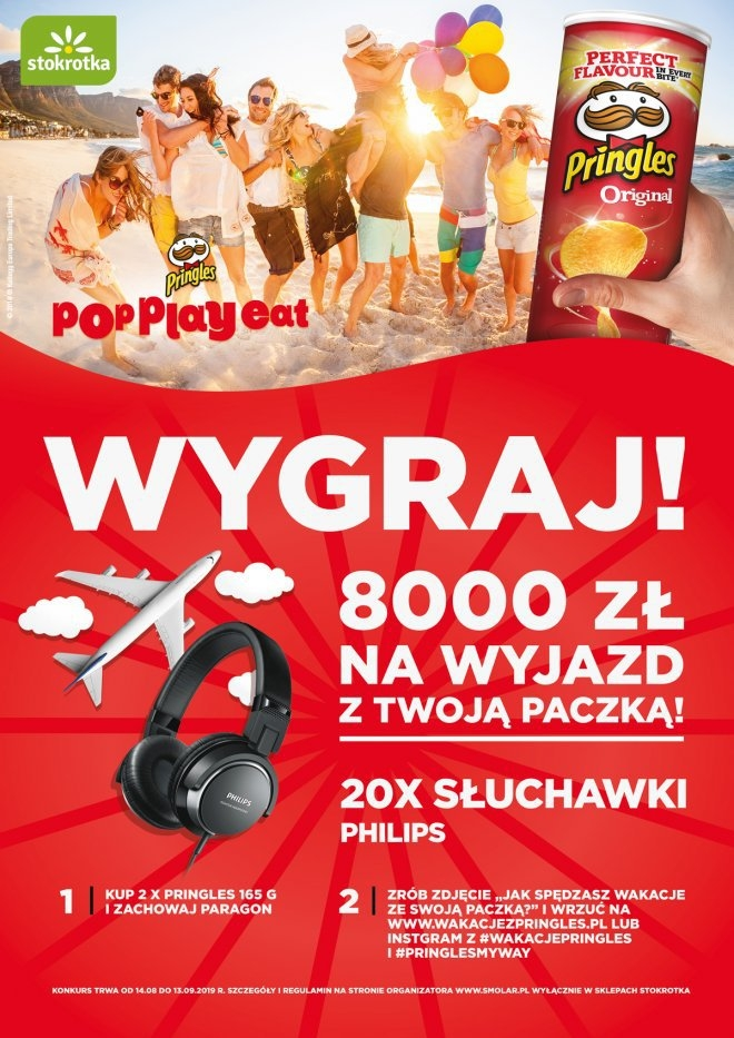 W terminie od 14.08.do 13.09.2019 trwa konkurs "Wakacje z Pringels". Aby wziąć w nim udział należy kupić 2 x Pringles 165 g i zachować paragon. Następnie wykonać autorskie zdjęcie na następujący temat : „Jak spędzasz wakacje ze swoją paczką” i wysłać je przez www.wakacjezpringles.pl lub instagram oznaczając swoje zdjęcie „#wakacjezpringles” oraz „#PringlesMyWay”.