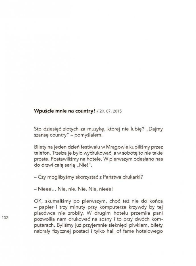 Przeczytaj wybrany fragment felietonu "Wpuśćcie mnie na country" na swoim profilu na FB za pomocą transmisji na żywo! (im ciekawiej, im bardziej interesująco tym większa szansa na wygraną" - zamieść transmisję jako publiczną i wyślij link w prywatnej wiadomości na fanpage Ten Typ Mes! - czekaj na ogłoszenie wyników