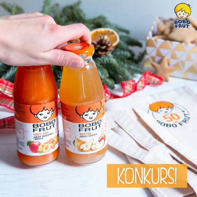 10x zestaw składający się z 2 soków Bobo Frut i torby płóciennej Bobo Frut o wartości 35 zł