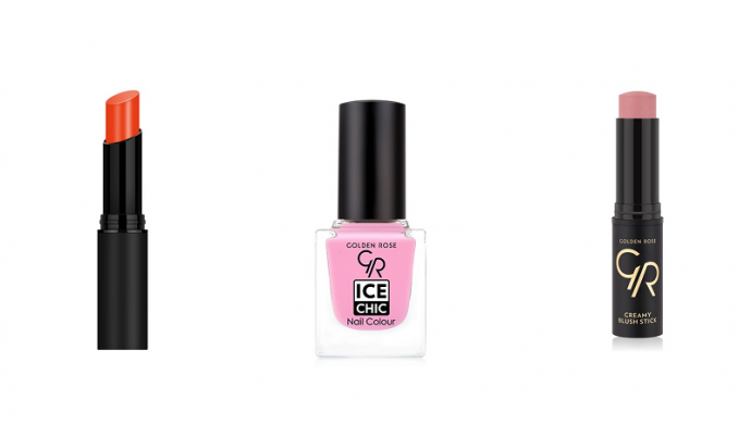 3 zestawy kosmetyków Golden Rose (Golden Rose Ice Chic lakier do paznokci + Golden Rose Shine Sheer Stylo Lipstick + Golden Rose Creamy Blush Stick)