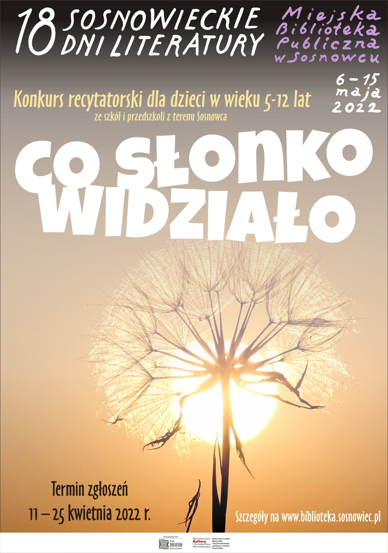 Konkurs odbywa się w ramach obchodów 18. Sosnowieckich Dni Literatury (6 maja – 15 maja 2022 r.) dofinansowanych środków Ministra Kultury i Dziedzictwa Narodowego w ramach programu operacyjnego „Promocja czytelnictwa”.