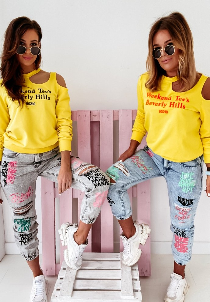 - Bluzka 90210 Hills Yellow&Black + spodnie Jeans American Grey