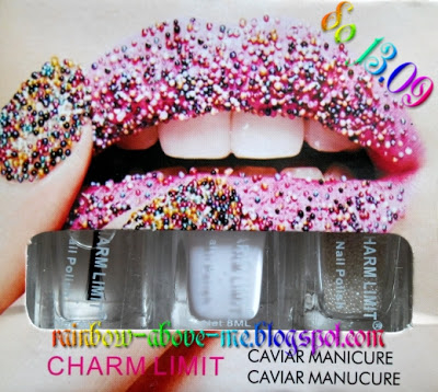 Zestaw do kawior manicure (Caviar Manicure) - Charm Limit, w którego skład wchodzą 2 lakiery po 8 ml każdy: bezbarwny utrwalacz, biała baza oraz malutkie perełki o kremowym kolorze.