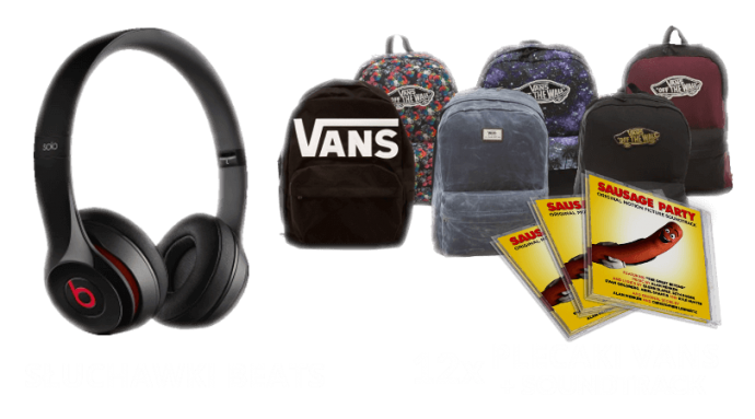 8 nagród za miejsca 6-13: plecak Vans i soundtrack Sausage Party