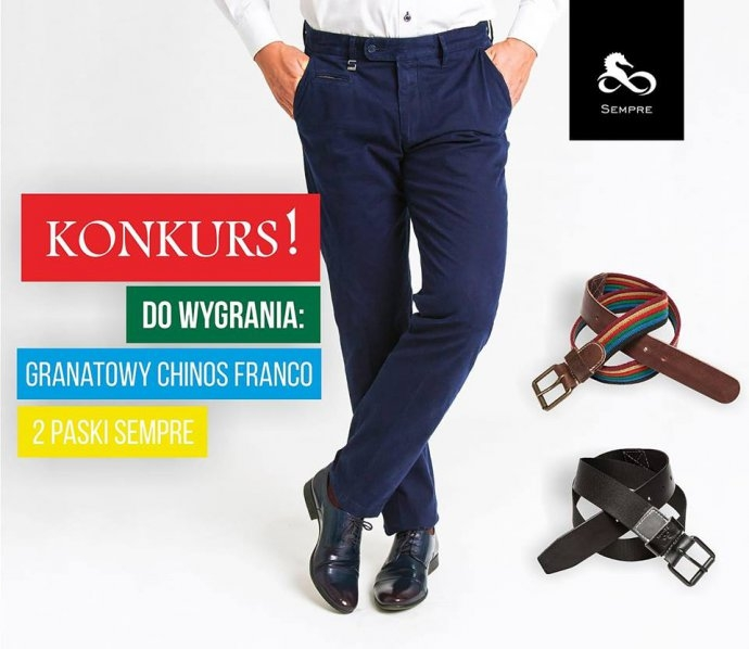 spodnie Chinosy Franco oraz dwa paski męskie.