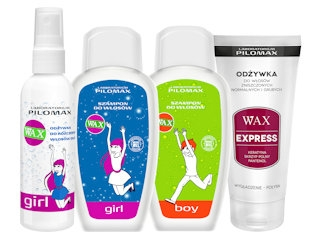 zestawy kosmetyków do włosów z serii WAX od Laboratorium Pilomax. W skład zestawu wchodzi: WAX Girl szampon + odżywka, Szampon Wax Boy + różowa odżywka Wax Express