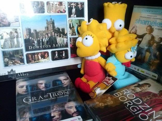 - Puzzle "Downton Abbey", "Gra o tron" na DVD, "Rodzina Borgiów" na DVD, "Shameless" na DVD i maskotka Barta Simpsona