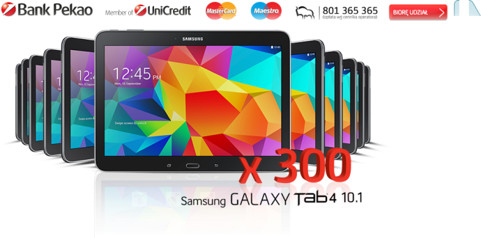 300 sztuk nagród w postaci tabletu Samsung T 530 Galaxy Tab4 16GB,o wartości jednostkowej 1200,00 złotych brutto (słownie: tysiąc dwieście złotych)