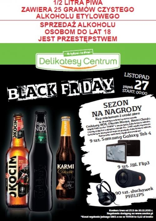 W dniach 27.11-20.12.2015 w sieci sklepów Delikatesy centrum odbywa się konkurs Carlsberg "Sezon na nagrody". Aby wziąć w nim udział należy kupić minimum 2 szt piwa spośród marek:Carlsberg NOX, Okocim Mocne oraz Karmi Classic , zachować paragon a następnie wysłać sms pod nr 70908 o treści Carlsberg.nr paragonu. odpowiedź na pytanie: Czarny piątek najlepszą okazją do ...