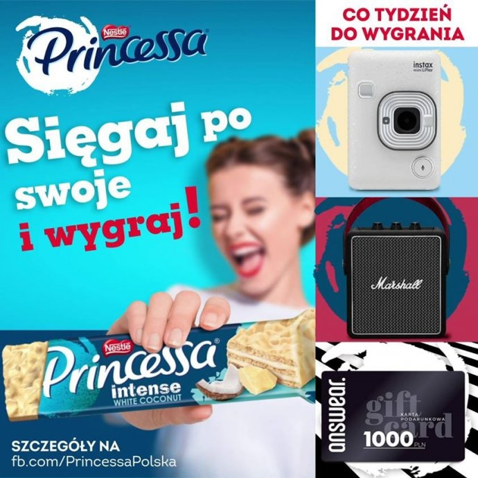 Kup 3 dowolne produkty Princessa, zachowaj paragon. Odpowiedz na pytanie konkursowe:"Jak wyrażasz siebie? "Odpowiedz wstaw pod postem konkursowym na facebooku, lub prześlij sms em na nr 4321