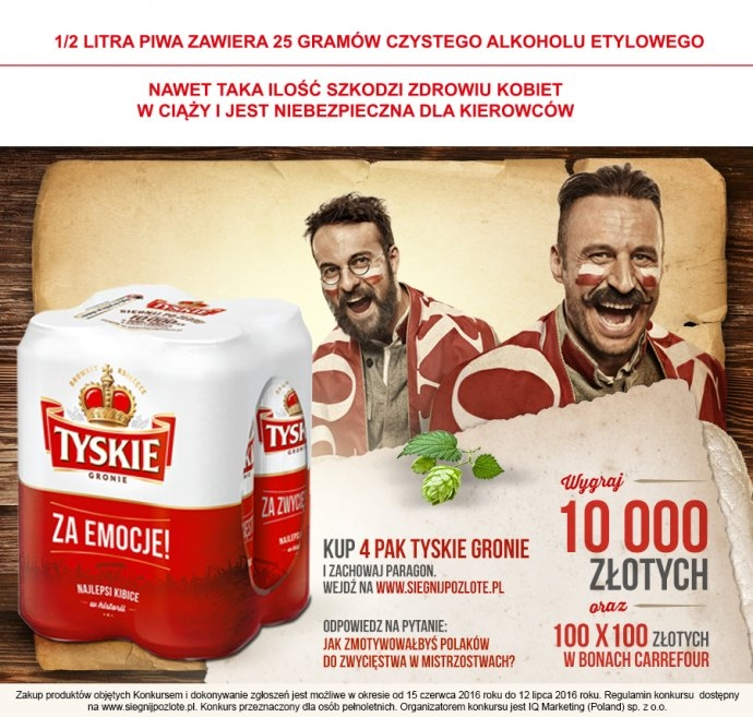 Kup w Carrefour 4-pak Tyskie Gronie i zachowaj paragon.