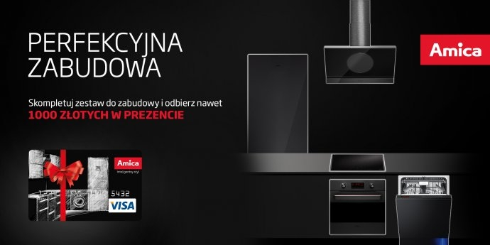 Promocja na sprzęt AGD do zabudowy trwa do 30-go listopada, a zakupów możesz dokonać zarówno w sklepach stacjonarnych, jak i internetowych. Aby wziąć udział w akcji wystarczy kupić 1 z 4 Zestawów Promocyjnych do zabudowy kuchni przygotowanych przez firmę Amica. Po zarejestrowaniu się na stronie: http://www.amica.pl/perfekcyjnazabudowa, wypełnieniu formularza zgłoszeniowego i przesłaniu go wraz z kopią rachunku masz szansę otrzymać 200, 350, 550 lub 1000 zł. Nagrody przekazane zostaną w postaci karty przedpłaconej Visa lub przelewu dokonanego bezpośrednio na Twoje konto.