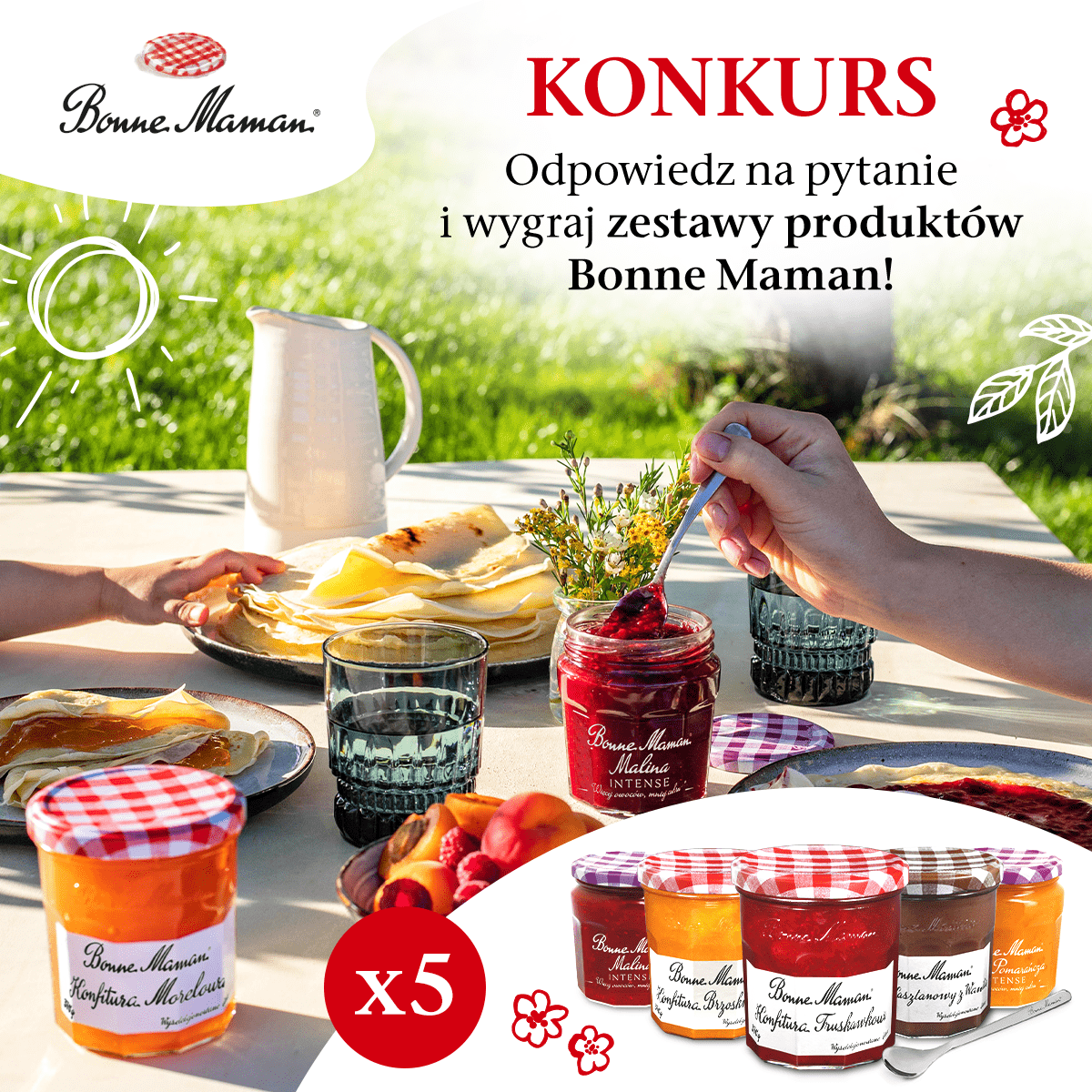 5 (słownie: pięć) Nagród głównych, każda w postaci gadżetów kuchennych Bonne Maman (łyżeczka, ściereczka i torba zakupowa) oraz zestawu produktów Bonne Maman, całość o łącznej wartości 116,57 zł (słownie: sto szesnaście złotych pięćdziesiąt siedem groszy).
