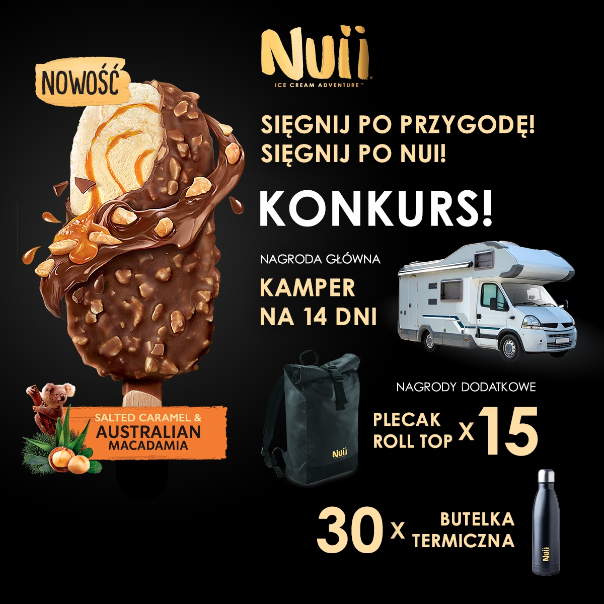 Udział w Konkursie polega na zakupie loda NUII w okresie od 14.03.2022 do 24.03.2022 w sklepie sieci Biedronka, zachowaniu paragonu, a następnie zamieszczeniu pod postem konkursowym na platformie Facebook komentarza wraz ze zdjęciem, będącym odpowiedzią na zadanie Konkursowe- zdjęcie ze swojej ulubionej wyprawy.