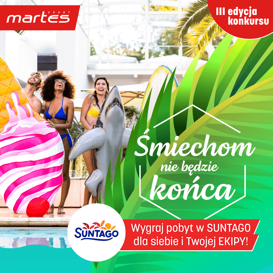 Nagrody pocieszenia dla wybranych 5 (pięciu) Laureatów, z których każdy otrzyma dwa bilety jednodniowe do Suntago Park of Poland do wykorzystania w terminie do 30.06.2023 r. włącznie (razem z weekendami oraz dniami wolnymi od pracy) uprawniającymi do korzystania z 3 stref: Jamango, Relax, Saunaria; (w przypadku biletu dla osób poniżej 16 roku życia bilet uprawnia do wejścia jedynie do strefy Jamango)