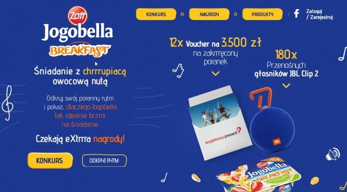 Kup opakowanie Jogobella Breakfast o dowolnym smaku. Jeśli chcesz grać o nagrodę główną, zachowaj paragon.