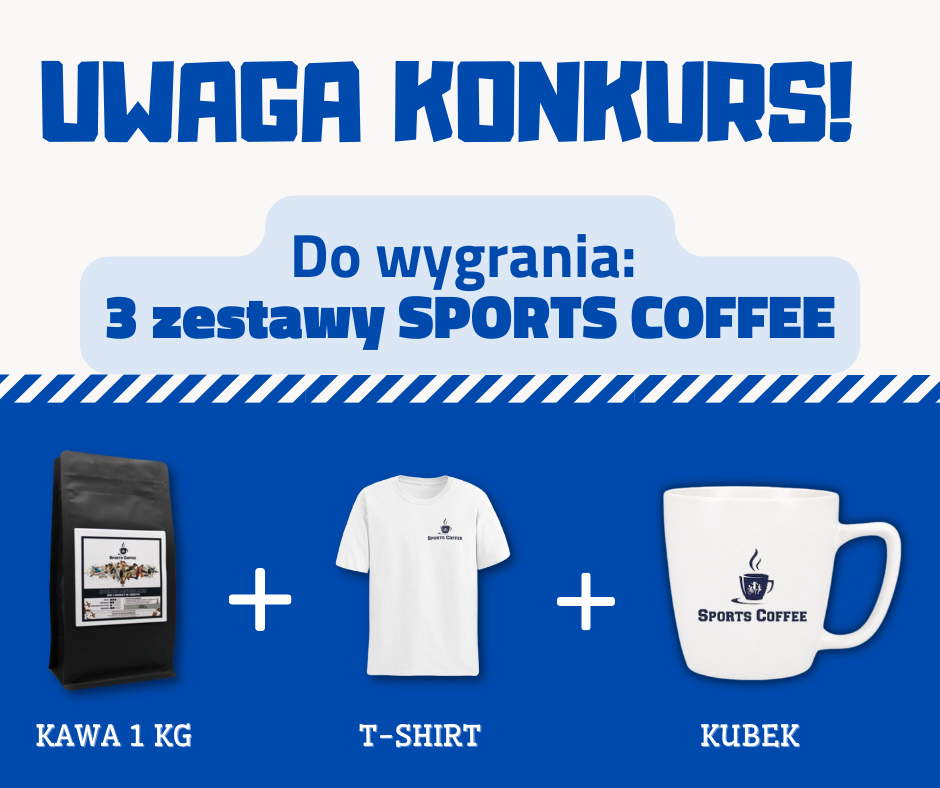 3 zestawy składające się z: kawy Sports Coffee (1 kg), koszulki oraz kubka z logo marki.