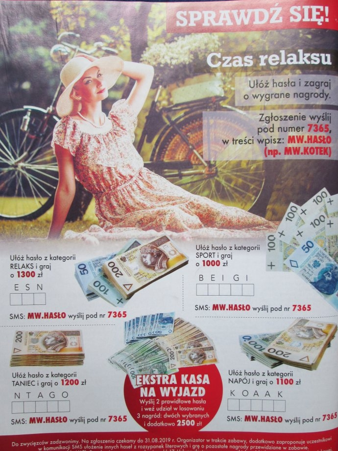 - w przypadku gry o nagrodę specjalną 2500 zł - nadesłanie co najmniej dwóch prawidłowych haseł wg ww. schematu