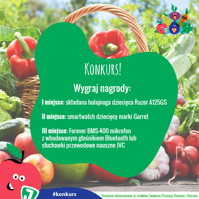 Konkurs polega na przygotowaniu krótkiej opowieści w formie komiksu, którego głównymi postaciami będą SUPERBOHATEROWIE – polskie warzywa i owoce, prowadzące ciekawe dialogi.