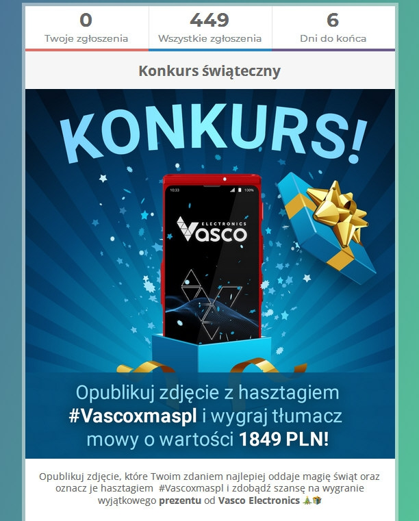 Opublikuj zdjęcie, które Twoim zdaniem najlepiej oddaje magię świąt oraz oznacz je hasztagiem #Vascoxmaspl i zdobądź szansę na wygranie wyjątkowego prezentu od Vasco Electronics.