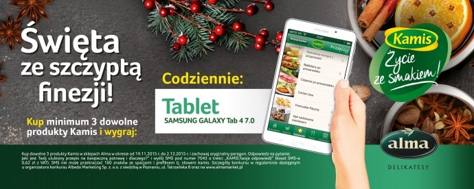 Warunkiem uczestnictwa w Konkursie jest dokonanie w czasie trwania Konkursu w dowolnym Sklepie jednorazowo zakupu minimum 3 Produktów promocyjnych oraz wysłanie zgłoszenia do Konkursu, poprzez wysyłanie SMS-a z prefiksem „kamis.” o treści: kamis.odpowiedź na Zadanie konkursowe pod numer 7043