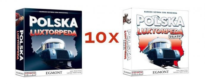 10 zestawów z planszówkami, a w każdym gry „Polska Luxtorpeda” oraz „Polska Luxtorpeda Odjazd”