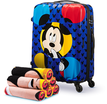 a) Walizka Samsonite na 4 kółkach 65 cm z wizerunkiem Myszki Miki o wartości 539 zł brutto dla 150 Zwycięzców o najlepszych zgłoszeniach po 50 dla każdej z trzech Edycji.
