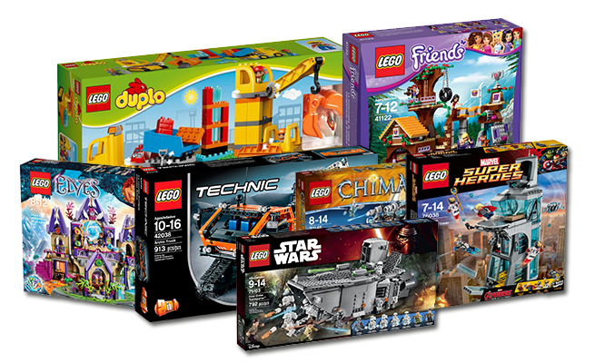 - Lego City, Lego Friends, Lego Nexo Knights, Lego Star Wars,