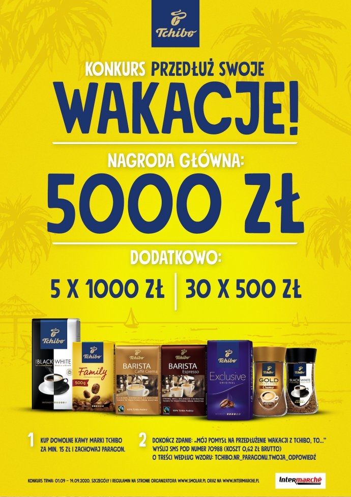 Mój pomysł na przedłużenie wakacji z Tchibo to… - Wyślij na numer 70988 o treści TCHIBO.NR PARAGONU.TWOJA ODPOWIEDŹ